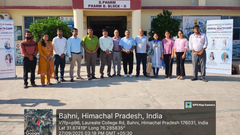 Laureate Institute of Pharmacy proudly organized a “Medical Health Camp” in collaboration with Balaji Hospital, Kangra (H.P.), guided by our belief: Your Health is Our Priority. Compassionate doctors and healthcare specialists provided vital consultations and distributed free medicines to 253 patients—helping our local Jawalamukhi community thrive.