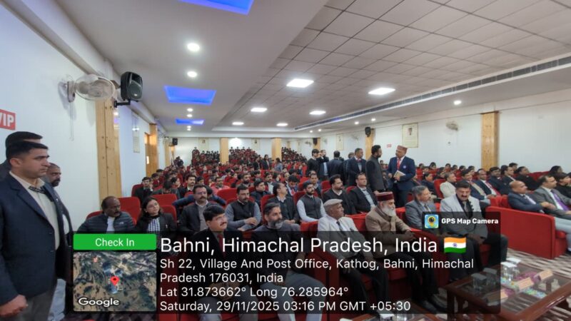 The seminar was further honored by the distinguished presence of Justice Jiya Lal Bhardwaj (Chairman, HP Judicial Academy Board), Sh. Ranjit Singh (Member Secretary, State Legal Services Authority), Ms. Anshu Choudhary, and Sh. Gaurav Choudhary (ACJM cum Senior Civil Judge), Sh. Abhishek Padha (President, Bar Association Dehra), Sh. Arvind Dhiman (Member, Bar Council HP), members of the Bar Association, Sh. Atul Chitkara (Architech), and Shree R.P. Jaswal (Dy.S.P.)